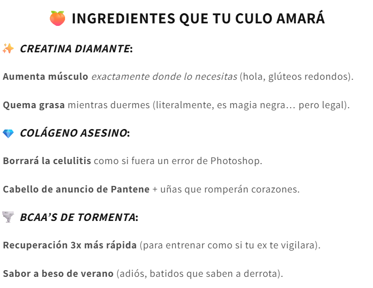 Está diseñada para ayudarte a aumentar el volumen, firmeza y tonificación de los glúteos, potenciando el crecimiento muscular en esa zona sin necesidad de entrenar excesivamente.