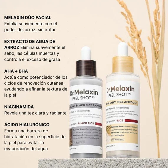 La ampolla exfoliante de arroz negro combina fermento de arroz negro rico en antioxidantes con Niacinamida para disolver el exceso de sebo y los puntos negros rebeldes, dejando los poros visiblemente más limpios.