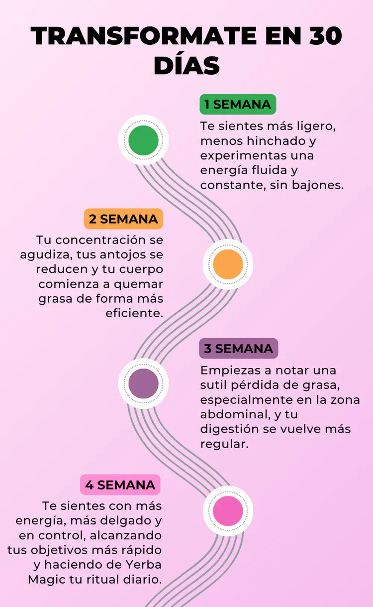 En general, en 2‑4 semanas notarás más energía, menor apetito y mejor digestión